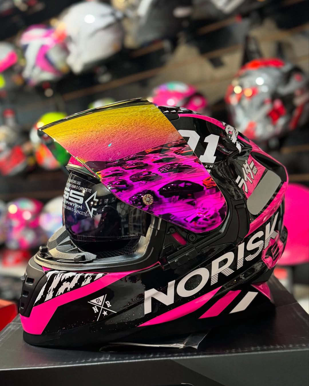 CAPACETE NORISK SOUL MANTY ROSA + VISEIRA ESPELHADA